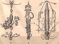 А тАУ Porrocaecum; Б тАУ Contracaecum; В тАУ Parascaris equorum;