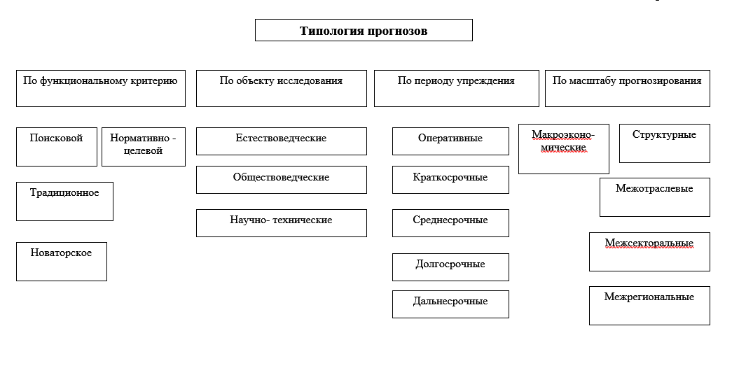 Прогнозов существует огромное множество, и каждый исследователь имеет свое представление о том, как упорядочить множество прогнозов, разграничив их на классы с помощью самых разнообразных критериев. В качестве таких критериев могут выступать цели и задачи, объекты прогнозирования, предметы и проблемы исследования, характер протекающих процессов, период упреждения прогноза, методы и способы организации прогнозирования и млн.д.