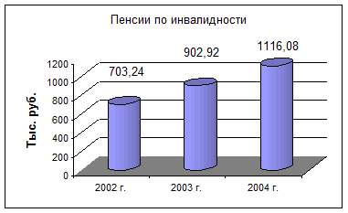 Рисунок 4 . Динамика пенсий по инвалидности за период 2002-2004 гг.