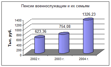 Рисунок 7. Динамика пенсий военнослужащим и их семьям за период 2002-2004 гг.