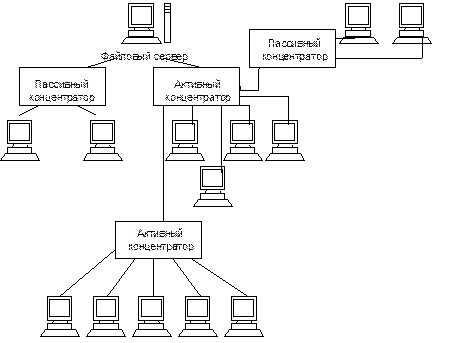 концентратором или просто хаб). Каждый компьютер должен быть подключен к нему с
