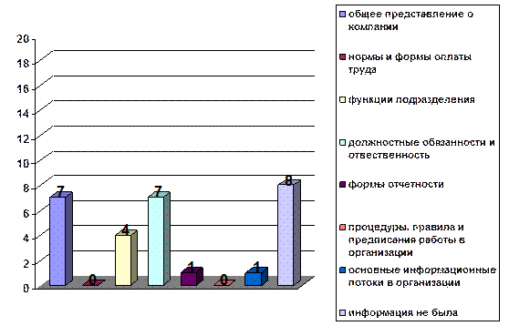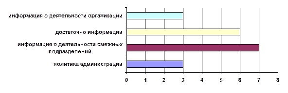 В-третьих, необходимо предоставить информацию, расширяющую диапазон интересов сотрудников в сферах, не имеющих прямого и непосредственного отношения к ним, так называемую «базовую информацию», содержащую задачи высшего руководства; цели обучения и дальнейшего образования; цели всего предприятия; информацию о политике организации и финансах, изменениях и т.д.