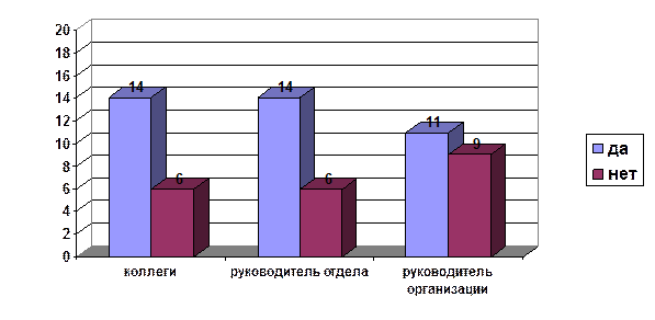 Выясняя отношение сотрудников к целям фирмы, руководство по сути дела проводит диагностику корпоративной культуры и узнает, при отсутствии каких факторов лояльность людей к фирме невозможна. Оказывается, их совсем немного, а доминирующих всего три: объективная оценка результатов работы сотрудника, признание его заслуг руководством и коллегами, возможность проявить инициативу. Правда, приоритеты в этой области меняются, и не только в различных видах бизнеса и структурах, но даже в разных подразделениях одной компании.