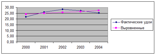 Вывод: по результатам использования метода аналитического выравнивания динамического ряда и отображения результатов графически заключаем, что удои за данный период времени имеют тенденцию к незначительному повышению.