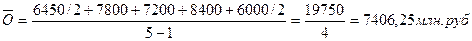 Средние остатки товаров магазина отчетного года составляют 7406,25 млн.руб.