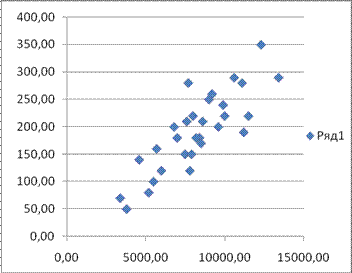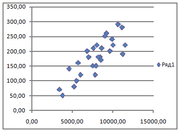 Как видно из данных таблицы 14, распределение числа банков достаточно хаотично, однако все-таки прослеживается их группировка вдоль диагонали из левого верхнего в правый нижний угол таблицы, т.е. увеличение факторного признака сопровождается увеличением результативного признака. Характер концентрации частот по диагонали корреляционной таблицы свидетельствует о наличии прямой корреляционной связи между рассматриваемыми признаками.