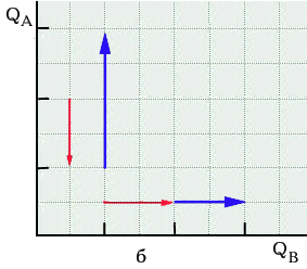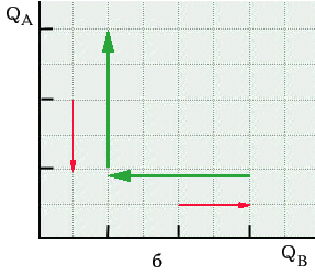 При повышении цены на благо B эффект замены выражается в сокращении потребления блага B и увеличении потребления блага A, а эффект дохода – в сокращении потребления обоих благ (рис. 4, а). При снижении цены на то же благо действие обоих составляющих эффектов проявляется в обратном направлении (рис. 4, а).