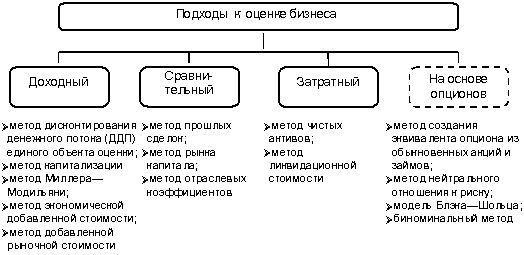 Важную роль в методологии стоимостного подхода к обеспечению конкурентоспособности предприятия играет собственно оценка стоимости предприятия (бизнеса). В теории и практике традиционно существует три подхода к оценке бизнеса: