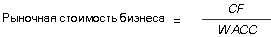 Наиболее адекватным подходом в оценке стоимости бизнеса является доходный. Этот подход основывается на допущении о том, что стоимость предприятия может быть определена как сумма доходов, которые оно приносит своему владельцу. Несколько упрощенно представим рыночную стоимость бизнеса предприятия как отношение денежного потока к средневзвешенной стоимости капитала: