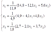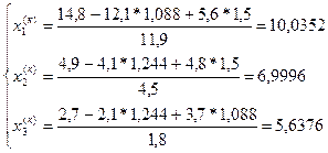 Вывод итерационных формул. Для получения итерационных формул каждое уравнение системы разрешаем относительно диагонального неизвестного, получим эквивалентную систему: