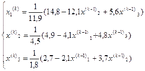 Следовательно система рекуррентных соотношений для решения методом Гаусса-Зейделя рассматриваемой системы имеет вид: