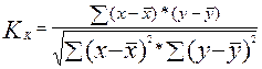 Формула исчисления коэффициента корреляции (тесноты связи) (Kk)