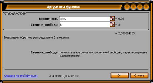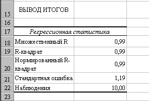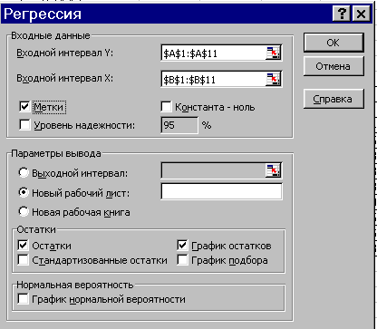 1) в главном меню выберем последовательно пункты СервисðАнализ данныхðРегрессия;