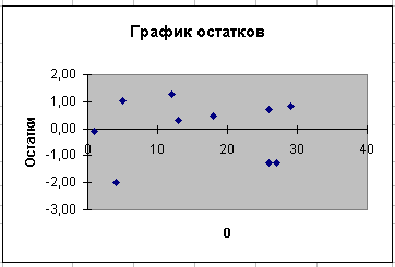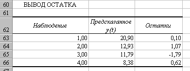 Вычисление остатков производим с помощью СервисðАнализ данныхðРегрессия (п.1)