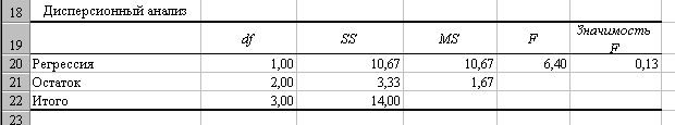 Дисперсия остатков S2 = 1,42 (значение из 4 столбца таблицы 2).