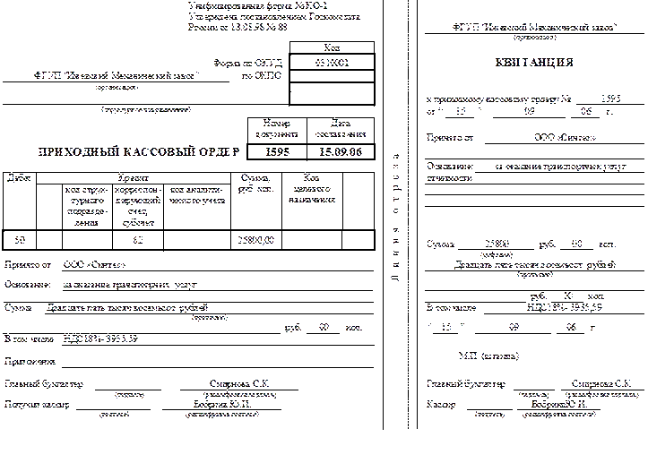 На приходном кассовом ордере проставляются дата его выписки и номер. Все остальные указанные на бланке реквизиты приходного кассового ордера также заполняются в обязательном порядке. Одновременно заполняется квитанция к приходному кассовому ордеру, которая подписывается главным бухгалтером или уполномоченным лицом.