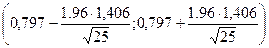 (1.99+4.578+7.28+4.664+1.422) / 25 = 0.797 – выборочное среднее