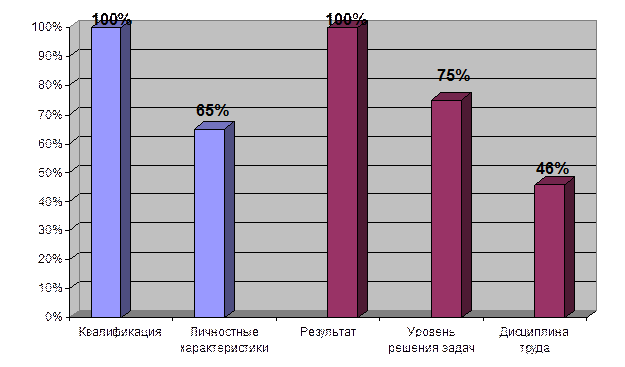 При оценки достигнутых результатов у сотрудников рассматриваются прежде всего результат (100%), уровень решения задач (75%) и дисциплина труда (46%).