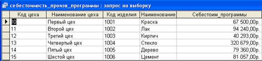 Рисунок 8 «Запрос Себестоимость_произв_программы »
