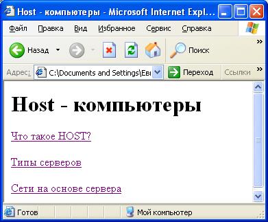 Требуется создать WEB-страницу о HOST-компьютерах.