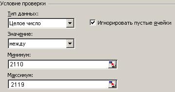 Рис. 5. Задание интервала допустимых значений целых чисел