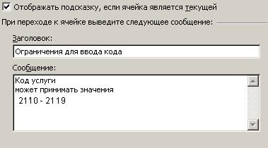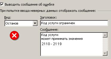 · выберите закладку «Сообщение об ошибке». Если установлен флажок «Выводить сообщение об ошибке», при попытке ввода в ячейку недопустимых значений выдается сообщение об ошибке;