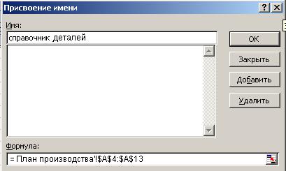 · в окне «Присвоение имени» (рис.9) нажмите кнопку «Добавить»;