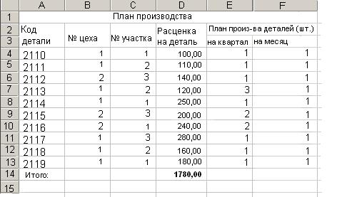 16. Создадим ведомость «Плановый фонд заработной платы на квартальную и месячную программы цеха по деталям»: