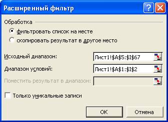 Из главного меню вызовем пункт Данные > Фильтр > Расширенный фильтр[7].