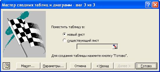 Нажмем кнопку Макет и перетащим поля в нужные разделы: в раздел Строка – поле Семейное положение, в раздел Столбец – поле Пол, а в раздел Данные – поле Количество детей: