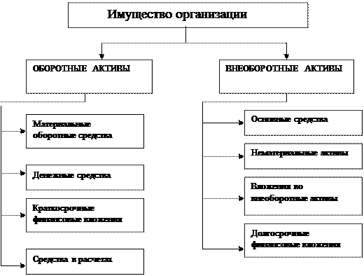 По составу и функциональной роли (характеру использования) имущество организации подразделяют на две группы: внеоборотные активы и оборотные активы (рис.1).