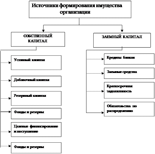 По источникам образования и целевому назначению имущество организации подразделяется на собственное и заемное (рис.2).