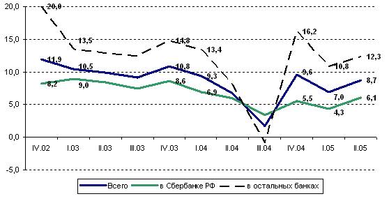 - доля вкладов физических лиц Сбербанка снижается, это связано с развитием розничного бизнеса в банках регионов;