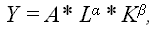 Y = f (L, K, T), |