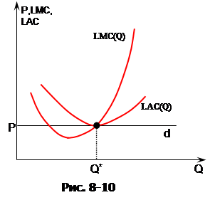 Если в отрасли мало фирм, то это очень плохая аппроксимация. Но если в долгосрочном периоде в отрасли достаточное число фирм, то равновесная цена не может слишком сильно отличаться от линии минимальных средних издержек. Полученный результат имеет важно значение, потому что он объясняет, почему в конкурентной отрасли со свободным входом в долгосрочном периоде прибыли фирм близки к нулю.