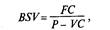 где BSV — безубыточный объем производства (продаж), шт. (англ. break-even sales volume); P — цена (англ. price); VC — переменные затраты (англ. variable costs); FC — постоянные затраты (fixed costs).