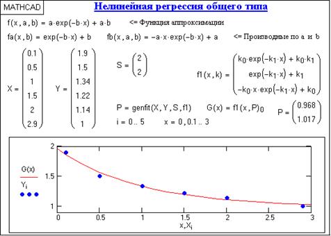 Регрессия общего типа. Второй вид нелинейной регрессии реализуется путем подбора параметров ki к заданной функции аппроксимации с использованием функции