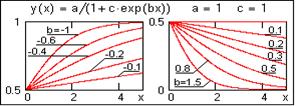 коэффициентов на рисунках слева приводится вид функций при постоянных значениях