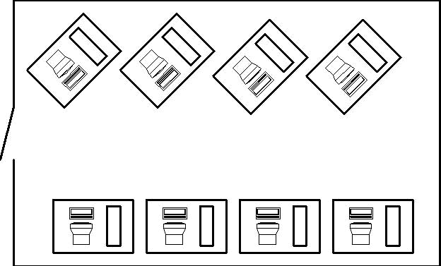 Недопустимый вариант размещения компьютерных рабочих мест в помещении представлен на рис. 6.8 а.