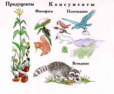 неорганических составляющих. Продуценты служат первым звеном пищевой цепи и