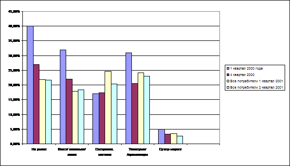 Эпоха индивидуального развития постепенно уходит в прошлое. В любой отрасли, развивающейся быстрыми темпами, рано или поздно наступает кризис. В ритейле как раз такая ситуация. Глубина кризиса станет понятна весной 2003 года, когда будут испробованы все новые схемы работы – франчайзинг, закупочные альянсы и т.д., появятся результаты покупок и поглощений, откроются строящиеся магазины западных ритейлеров. [6]