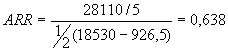 Этот метод имеет две характерные черты: во-первых, он не предполагает дисконтирования показателей дохода; во-вторых, доход характеризуется показателем чистой прибыли PN (балансовая прибыль за минусом отчислений в бюджет) . Алгоритм расчета исключительно прост, что и предопределяет широкое использование этого показателя на практике: коэффициент эффективности инвестиции (ARR) рассчитывается делением среднегодовой прибыли PN на среднюю величину инвестиции (коэффициент берется в процентах) . Средняя величина инвестиции находится делением исходной суммы капитальных вложений на два, если предполагается, что по истечении срока реализации анализируемого проекта все капитальные затраты будут списаны; если допускается наличие остаточной или ликвидационной стоимости (RV) , то ее оценка должна быть исключена.