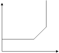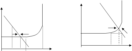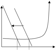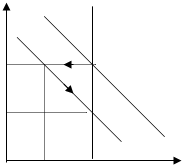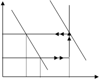 Некоторые экономисты полагают, что эту ситуацию можно рассмотреть с использованием рисунка 3.6, только двигаясь в обратном направлении, в результате получатся симметричные изменения равновесия. Однако есть и другая позиция. В соответствии с этой позицией, симметричное изменение в равновесии происходит только на горизонтальном отрезке (рисунок 3.7):