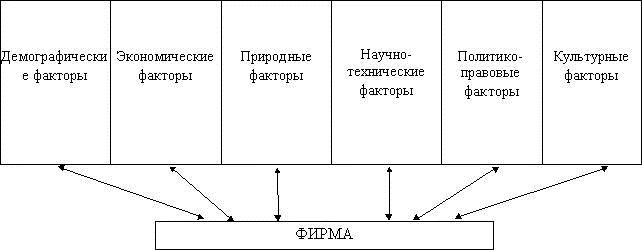 Маркетинговая среда фирмы - это совокупность активных субъектов и сил, действующих за пределами фирмы и влияющих на возможности руководства службой маркетинга устанавливать и поддерживать с целевыми клиентами отношения успешного сотрудничества.