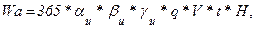 W = m1 Sо + m2 Aо + m3 По(1) + m4 По(2),