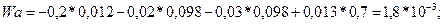 W = -0,2 * 0,007 – 0,02 * 0,11 – 0,03 * 0,08 + 0,013 * 0,78 = 4,14 * 10-3,