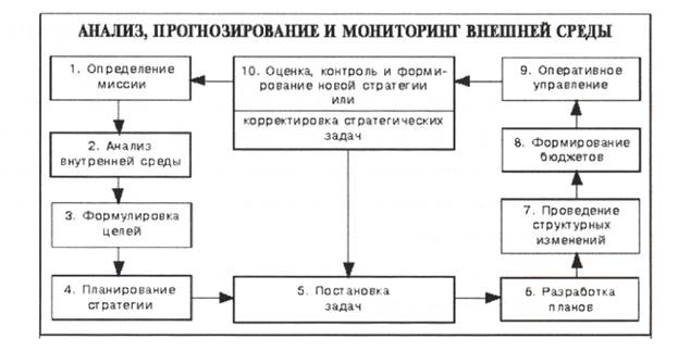1) стратегический анализ, состоящий из: анализов внешней и внутренней среды и их совокупной оценки;