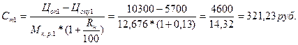 Ст.м1 = Ст1 – Ст.соб1 = 321,23 – 192,7 = 128,53 руб.