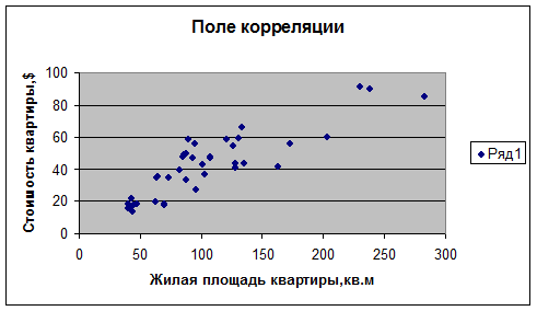 2. Построить поле корреляции результативного признака и наиболее тесно связанного с ним фактора.