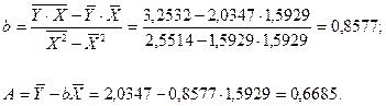 Значения параметров a и b линейной модели определим, используя данные таблицы 2.